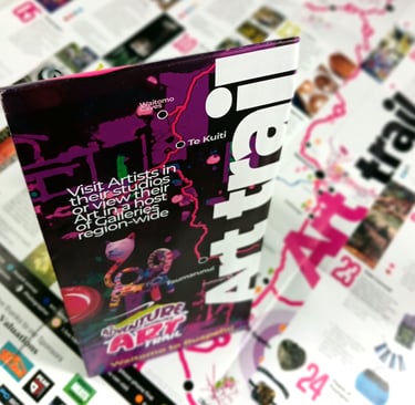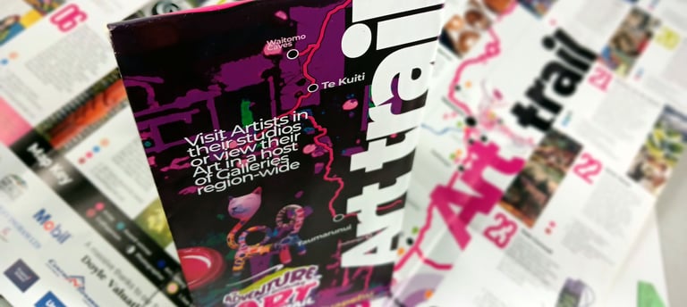 Printed versions of the Art trail that fold down to envelope size are available in Isites and Tourist destinations Waitomo to South Ruapehu
