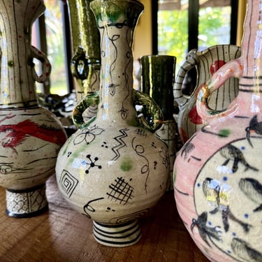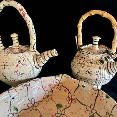 I draw significant inspiration from Japanese ceramics, particularly the Oribe style, which is known for its avant-garde, deformed vessels and bold abstract patterns. My work is also influenced by the Japanese philosophy of Wabi-Sabi which celebrates the beauty of imperfection and transience. I hand-mix my own clay and glazes, often using ash and materials from the Ruapehu region. Ceramics from my kilns are used in everyday life and in collections worldwide.